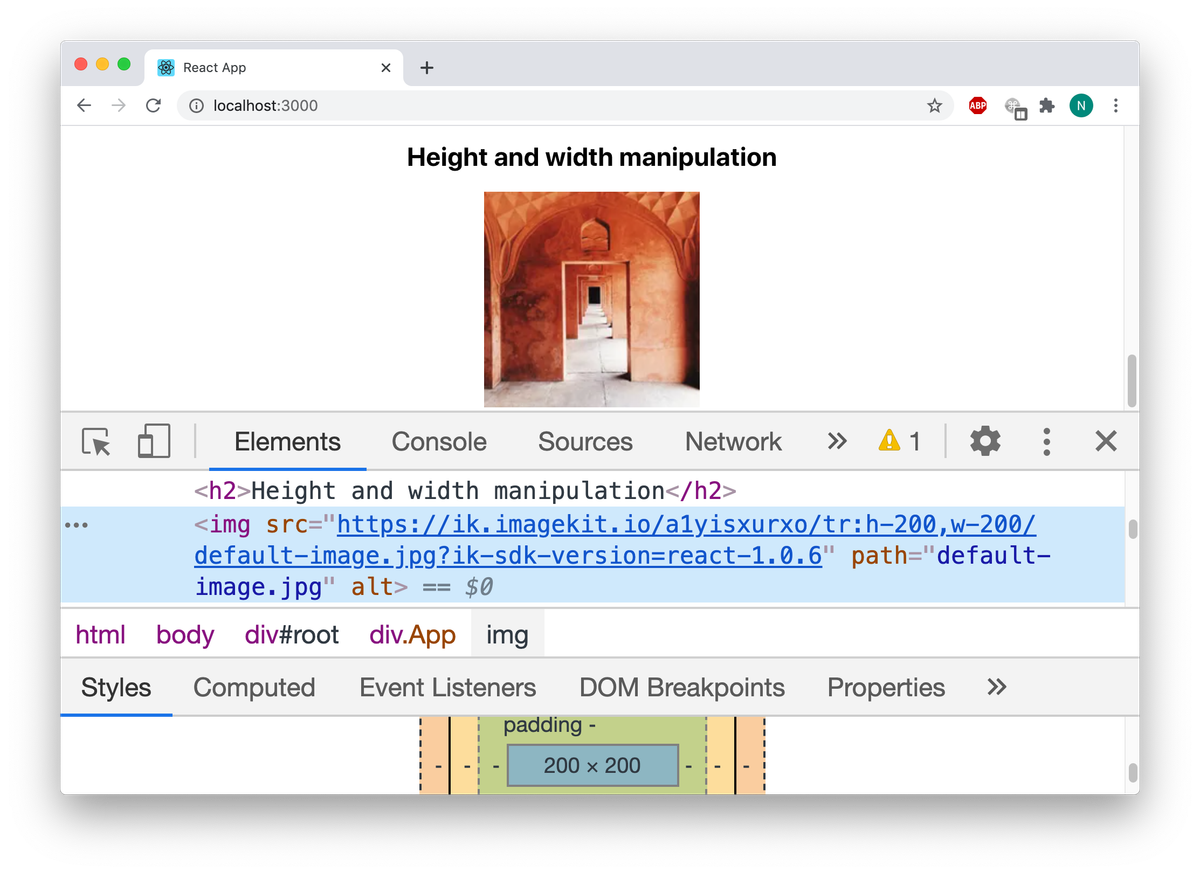 <img src="https://ik.imagekit.io/<YOUR_IMAGEKIT_ID>/tr:h-200,w-200/default-image.jpg?ik-sdk-version=react-1.x.x"